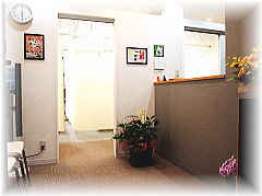 信号を左に曲がると、階段の壁に貼られた当院の看板が左手に見えますので、その階段を昇って下さい。当院は2階にございます。 |