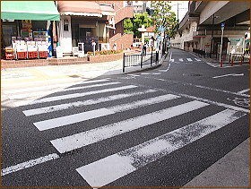 横断歩道を渡って頂き、右前方向に向かい、線路を右上に見ながら直進して下さい。 |